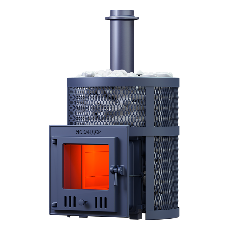 Модификация "Искандер ЗК" - это печь "Искандер" с закрытой каменкой, двумя паровыми пушками и дверцей для залповой подачи пара.