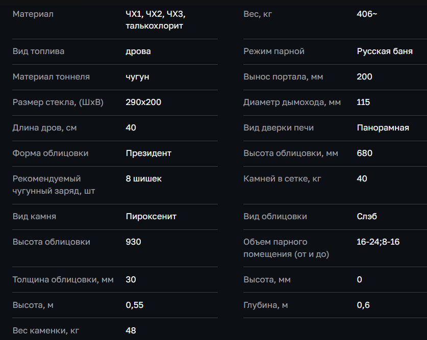 Каменка прямого нагрева, толщиной 25 мм и 146 теплосъемных шипов по всей её поверхности позволяют каменке быстро нагреться и долго сохранять тепло.