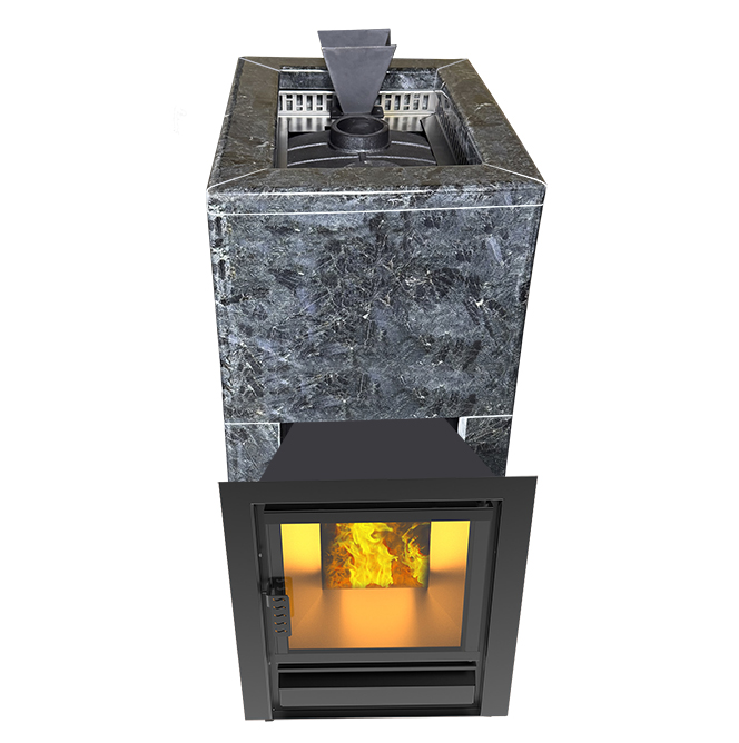 Сочетание дизайна, мощи, универсальности и качества. Печь имеет закрытую каменку с воронкой клапаном для поддачи воды на самые раскалённые камни, уложенные в Закрытой каменке! Оригинальная безрамочная дверца с Огромным стеклом подчёркивают стилистику печи!