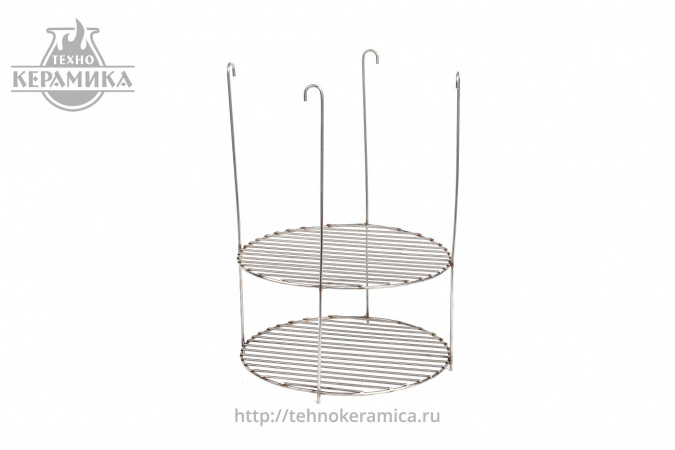 Этажерка двух ярусная диаметром 280 мм является универсальным аксессуаром для тандыра и отличной альтернативой шампурам, позволяет готовить несколько разнообразных блюд одновременно. Она подходит для больших тандыров, таких как тандыр "Гектор", "Казачий", "Степной". Готовить с её помощью удобно и легко, а большой диаметр яруса дает возможность быстро все разложить. Этажерка может служить дополнительным приспособлением для других керамических приспособлений (камней для выпечки, глиняных тарелок), что увеличивает количество приготавливаемых блюд. На ней отлично запекаются овощи, стейки рыбы и мяса, а также тушки птицы. За счет жара от глиняных стенок тандыра, пища получается вкусной, не пригорает, равномерно обжаривается со всех сторон. Используя двух ярусную этажерку можно готовить и запекать блюда в собственном соку, предварительно завернув их в фольгу. Расстояние между ярусами в четырнадцать сантиметров позволяет беспрерывно циркулировать горячему воздуху и равномерно запекать пищу между слоями. Большой диаметр этажерки позволяет приготовить за раз много еды и накормить сразу большую компанию.