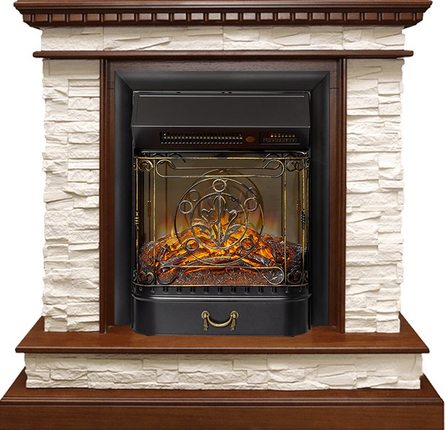 Схожесть с натуральным камином усиливается звуком потрескивающих дров и двухступенчатой системой обогрева. Управлять электрокамином можно с помощью пульта ДУ, который входит в комплект поставки.