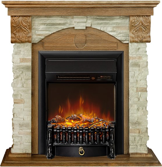 В качестве декоративного топлива используются светодиодные поленья, которые в совокупности со звуками потрескивания горящего огня усиливают эффект играющего в топке «пламени». Яркость имитации пламени можно регулировать: доступно 3 режима.