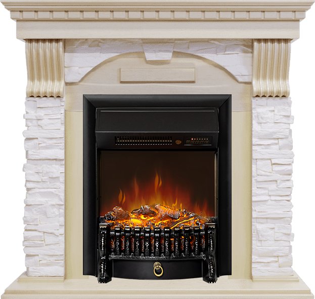 В качестве декоративного топлива используются светодиодные поленья, которые в совокупности со звуками потрескивания горящего огня усиливают эффект играющего в топке «пламени». Яркость имитации пламени можно регулировать: доступно 3 режима.