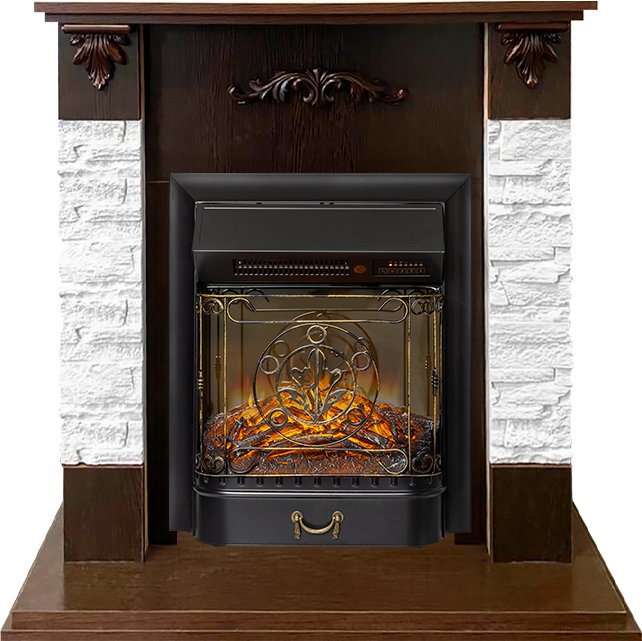 Схожесть с натуральным камином усиливается звуком потрескивающих дров и двухступенчатой системой обогрева. Управлять электрокамином можно с помощью пульта ДУ, который входит в комплект поставки.