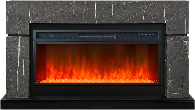 В качестве внутреннего декора используются стильные прозрачные кристаллы и разноцветная галька. Подсветку кристаллов и яркость пламени можно регулировать – доступно 4 возможных варианта. Модель дополнена звуковой имитацией потрескивания дров.