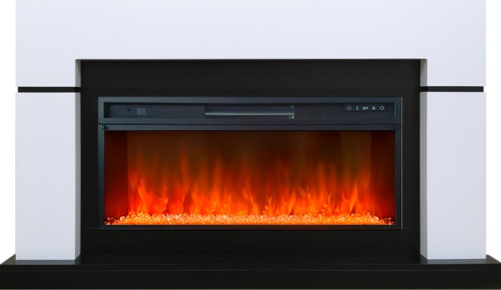 В качестве внутреннего декора используются стильные прозрачные кристаллы и разноцветная галька. Подсветку кристаллов и яркость пламени можно регулировать – доступно 4 возможных варианта. Модель дополнена звуковой имитацией потрескивания дров.