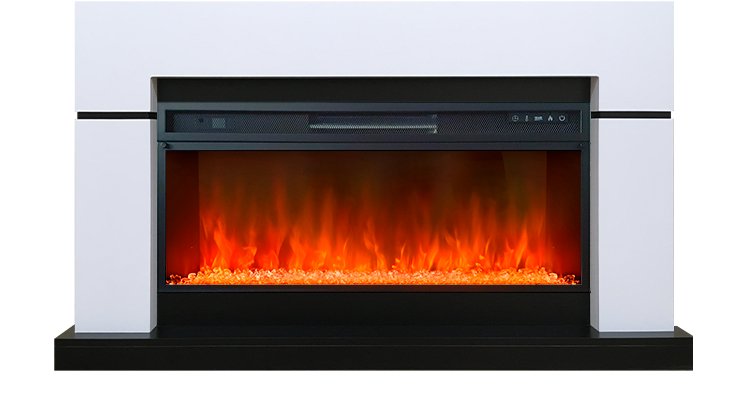 В качестве внутреннего декора используются стильные прозрачные кристаллы и разноцветная галька. Подсветку кристаллов и яркость пламени можно регулировать – доступно 4 возможных варианта. Модель дополнена звуковой имитацией потрескивания дров.