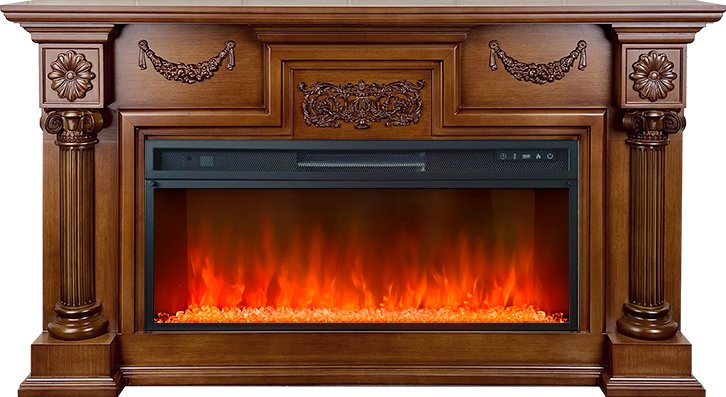 В качестве внутреннего декора используются стильные прозрачные кристаллы и разноцветная галька. Подсветку кристаллов и яркость пламени можно регулировать – доступно 4 возможных варианта. Модель дополнена звуковой имитацией потрескивания дров.