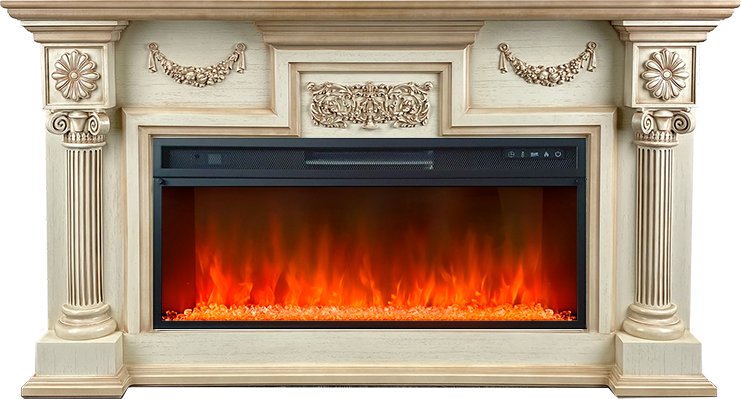 В качестве внутреннего декора используются стильные прозрачные кристаллы и разноцветная галька. Подсветку кристаллов и яркость пламени можно регулировать – доступно 4 возможных варианта. Модель дополнена звуковой имитацией потрескивания дров.
