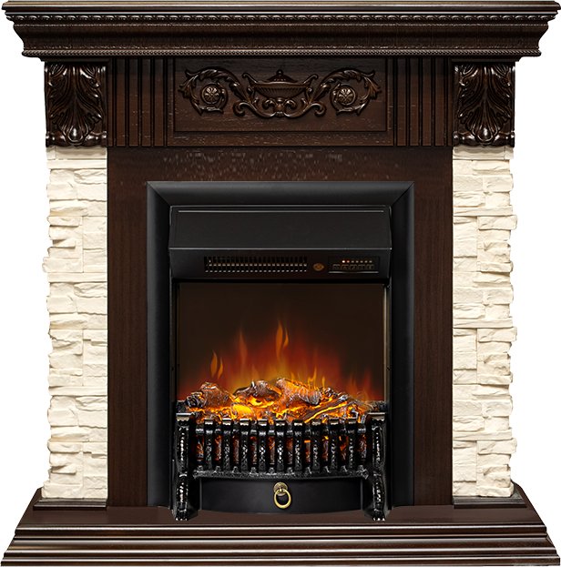 В качестве декоративного топлива используются светодиодные поленья, которые в совокупности со звуками потрескивания горящего огня усиливают эффект играющего в топке «пламени». Яркость имитации пламени можно регулировать: доступно 3 режима.