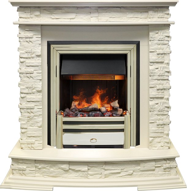Электрокамин выполнен в золотом цвете. Золото – это материал, который никогда не выйдет из моды, это свидетельство безупречного вкуса и верности традициям. Цвет золота подчёркивает неповторимый стиль и необычность этого камина. К очагу можно подобрать любой портал, который подойдет к вашему интерьеру и станет его лаконичным продолжением. В очаге Dimplex Cavendish применяется эффект «живого» пламени Opti-Myst, в основу которого заложен инновационный принцип имитации огня - в очаге мерцает пламя, практически неотличимое от настоящего. В камине используется муляж дров ручной работы, которые невозможно отличить от настоящих поленьев, а благодаря подсветке создается полная имитация жарко пылающего очага.