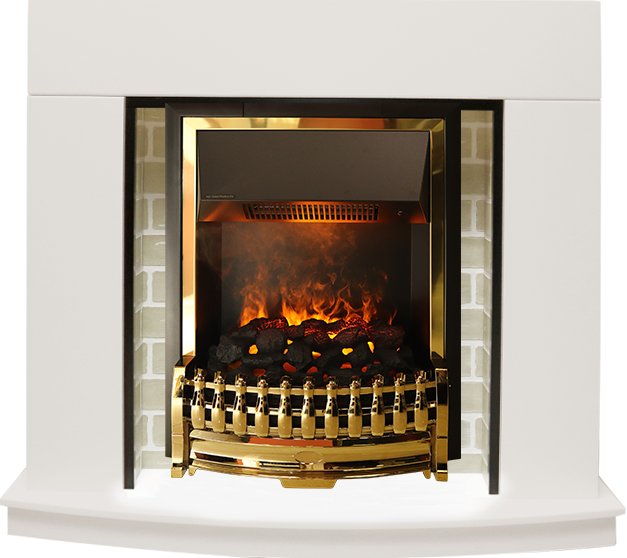 Электрический очаг Dimplex Atherton серии Opti-Myst с эффектом реального пламени. Этот стильный классический очаг в обрамлении золотого цвета предназначен для встраивания в порталы, выполненные в классическом стиле.