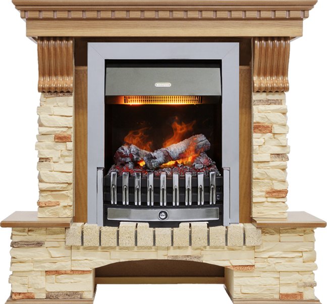 Пламя электрического очага с эффектом реального пламени создает неповторимую атмосферу тепла и уюта. В очаге предусмотрена возможность включения пламени без режима обогрева, что позволит наслаждаться работающим камином даже летом. Мощность обогрева: 2 кВт. Уникальность пламени Opti-Myst заключается в его стопроцентной реалистичности: для создания эффекта пламени используется встроенный ультразвуковой парогенератор. Вода заливается в специальный выдвигаемый резервуар, удобно расположенный под муляжом дров, из которого, при помощи парогенератора, выходит в виде пара. Клубы пара подсвечиваются галогеновыми лампами со специальным светофильтром. Подсветка работает таким образом, что снизу пар, поступающий из парогенератора, подсвечивается ярче и воспринимается как огонь, а верхняя часть пара в этом случае становится похожей на дым.