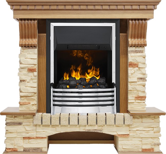 3D-эффект реалистичного пламени достигается при помощи парогенератора и светодиодных ламп, что обеспечивает ощущение настоящего огня, пляшущего среди тлеющих углей.