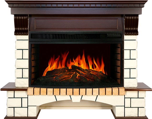 В качестве декоративного топлива в очаге используются реалистичные поленья со светодиодной подсветкой, которая в совокупности со звуковой имитацией потрескивания дров усиливает эффект натуралистичности пламени в топке.