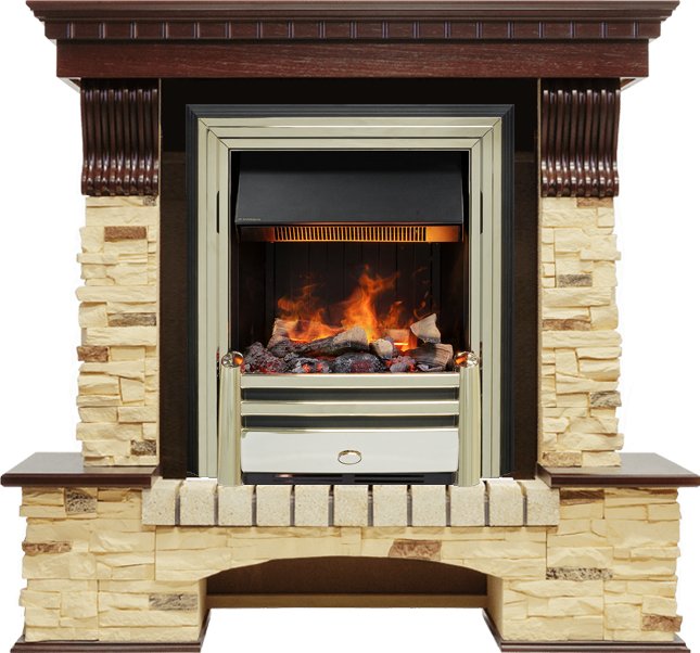 Электрокамин выполнен в золотом цвете. Золото – это материал, который никогда не выйдет из моды, это свидетельство безупречного вкуса и верности традициям. Цвет золота подчёркивает неповторимый стиль и необычность этого камина. К очагу можно подобрать любой портал, который подойдет к вашему интерьеру и станет его лаконичным продолжением. В очаге Dimplex Cavendish применяется эффект «живого» пламени Opti-Myst, в основу которого заложен инновационный принцип имитации огня - в очаге мерцает пламя, практически неотличимое от настоящего. В камине используется муляж дров ручной работы, которые невозможно отличить от настоящих поленьев, а благодаря подсветке создается полная имитация жарко пылающего очага.