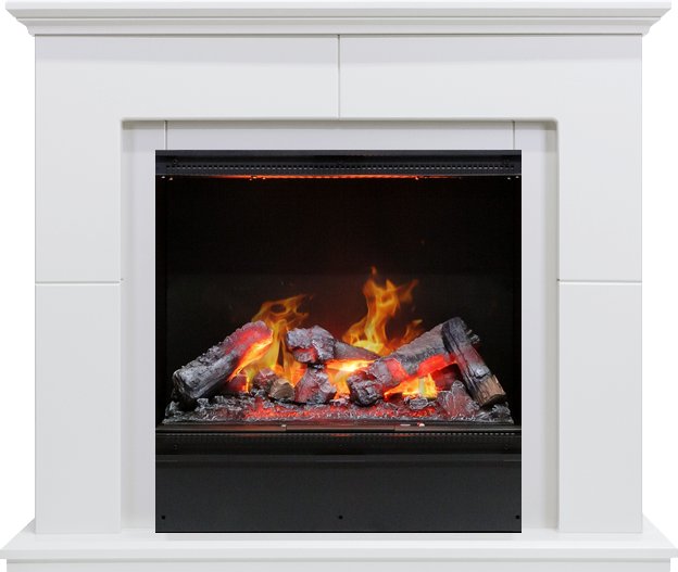 Цвет портала контрастирует с черным обрамлением очага Dimplex, оттеняя тем самым яркое пламя, которое невозможно отличить от настоящего. Единственное его отличие заключается в том, что оно не обжигает.