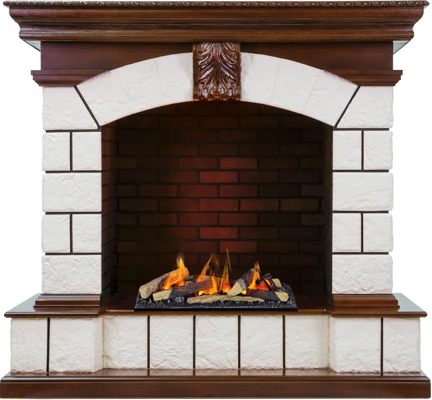 Обрамление выполнено из материала, имитирующего натуральный камень. Широкая столешница позволит разместить на камине предметы декора. Портал выглядит массивным и станет ярким акцентом гостиной, кабинете или столовой.