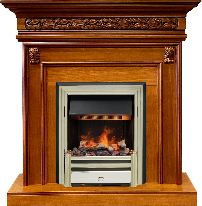 Электрокамин выполнен в золотом цвете. Золото – это материал, который никогда не выйдет из моды, это свидетельство безупречного вкуса и верности традициям. Цвет золота подчёркивает неповторимый стиль и необычность этого камина. К очагу можно подобрать любой портал, который подойдет к вашему интерьеру и станет его лаконичным продолжением. В очаге Dimplex Cavendish применяется эффект «живого» пламени Opti-Myst, в основу которого заложен инновационный принцип имитации огня - в очаге мерцает пламя, практически неотличимое от настоящего. В камине используется муляж дров ручной работы, которые невозможно отличить от настоящих поленьев, а благодаря подсветке создается полная имитация жарко пылающего очага.