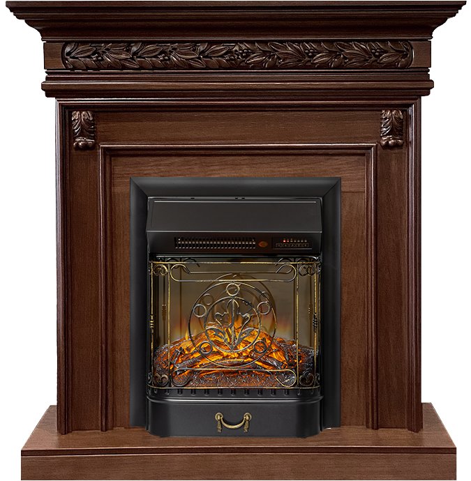 Схожесть с натуральным камином усиливается звуком потрескивающих дров и двухступенчатой системой обогрева. Управлять электрокамином можно с помощью пульта ДУ, который входит в комплект поставки.