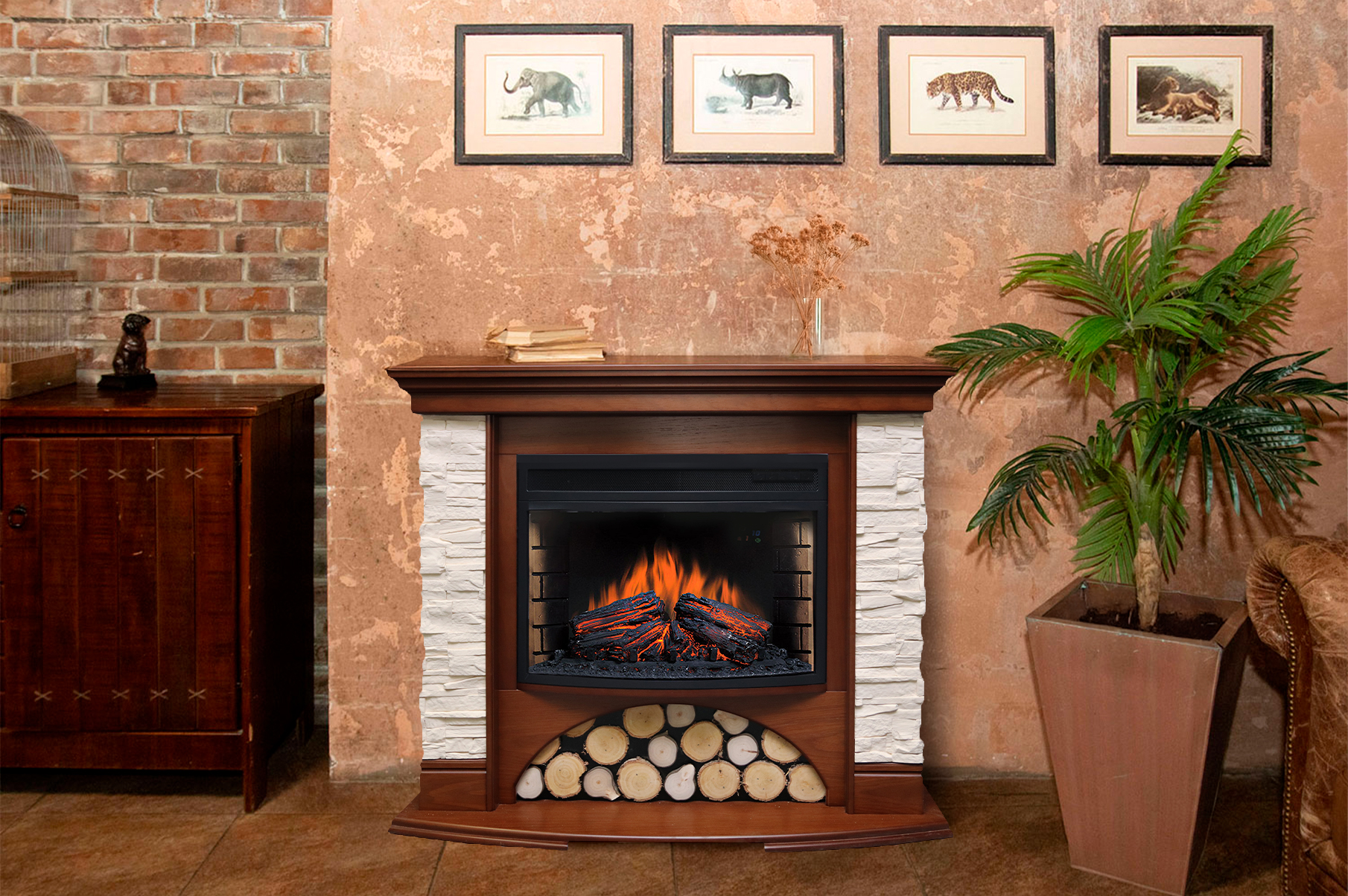 Топка очага выложена кирпичной кладкой, за счет чего выглядит более натурально. Игра огня, реализованного с помощью специальной подсветки, также напоминает настоящий, а мерцающая светодиодная поленница усиливает его эффект. Также в Dioramic 25 LED FX воссоздана звуковая имитация потрескивания горящих дров.