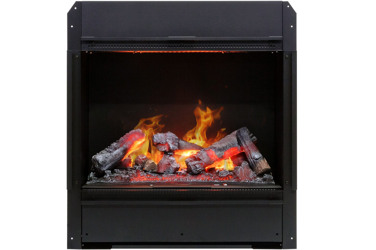 Пламя электрического очага с эффектом реального пламени создает неповторимую атмосферу тепла и уюта. В очаге предусмотрена возможность включения пламени без режима обогрева, что позволит наслаждаться ярко пылающим камином даже летом. Мощность обогрева: 2 кВт. Уникальность пламени Opti-Myst заключается в его стопроцентной реалистичности: для создания эффекта пламени используется встроенный ультразвуковой парогенератор. Вода заливается в специальный выдвигаемый резервуар, удобно расположенный под муляжом дров, из которого, при помощи парогенератора, выходит в виде пара. Клубы пара подсвечиваются галогеновыми лампами со специальным светофильтром. Подсветка работает таким образом, что снизу пар, поступающий из парогенератора, подсвечивается ярче и воспринимается как огонь, а верхняя часть пара в этом случае становится похожей на дым.