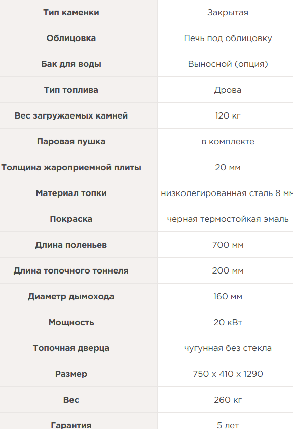 Металл толщиной 8 мм (корпус) и 20 мм - в самой раскаленной зоне каменки, способный выдержать большую массу камней и не деформироваться.