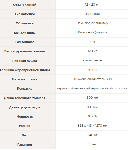 Нержавеющая сталь толщиной 5 мм (корпус) и 10 мм - в самой раскаленной зоне каменки, способный выдержать большую массу камней и не деформироваться.