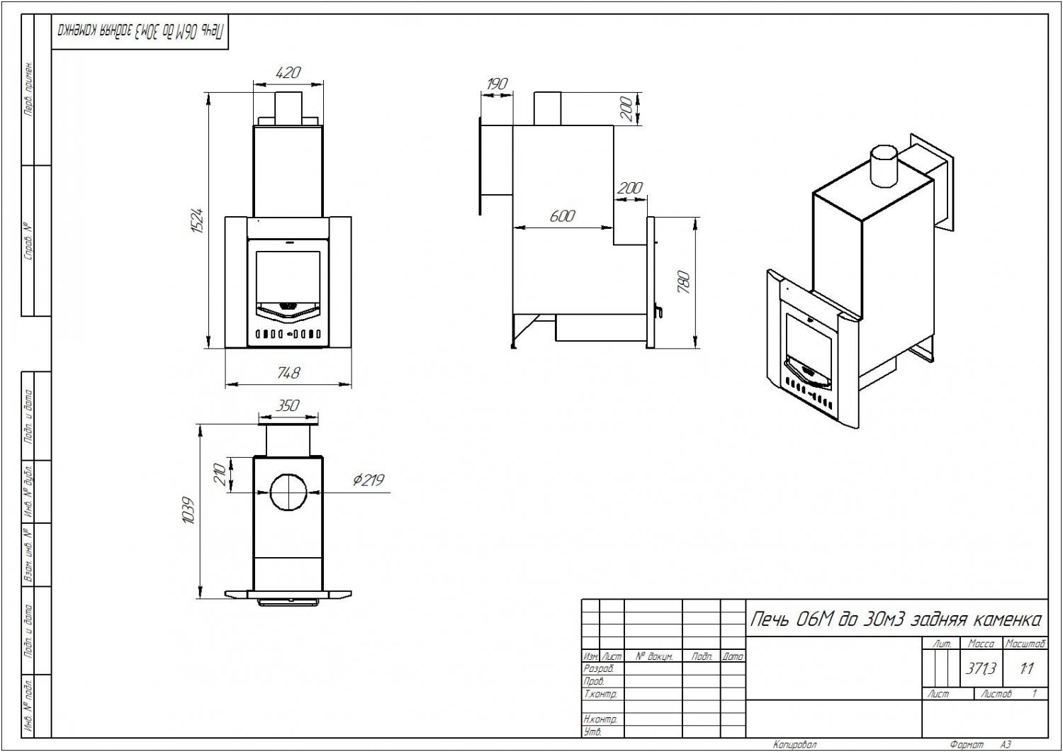 Тип топлива: Дрова (до 600 мм).