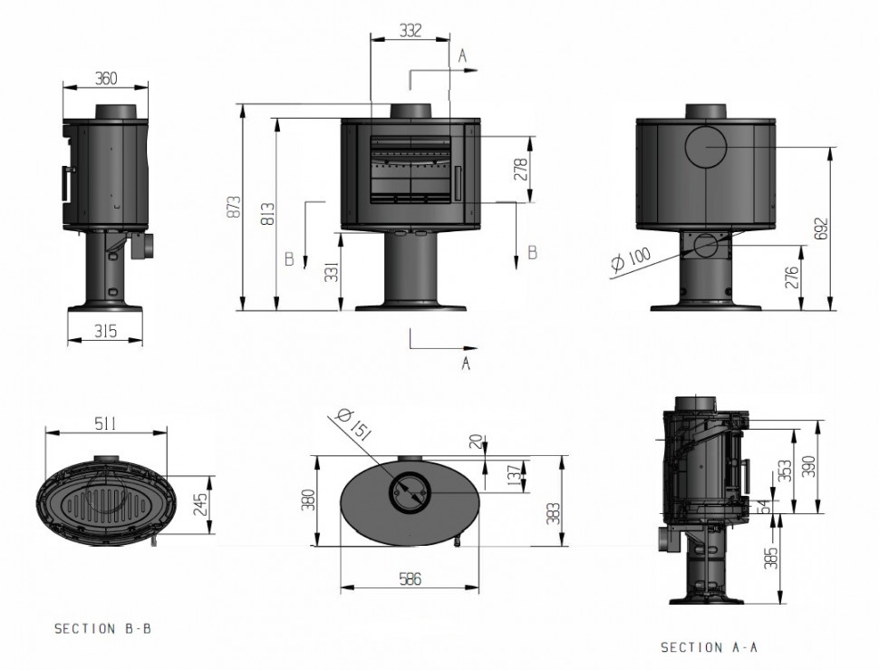 | Диаметр дымохода | 150 мм |