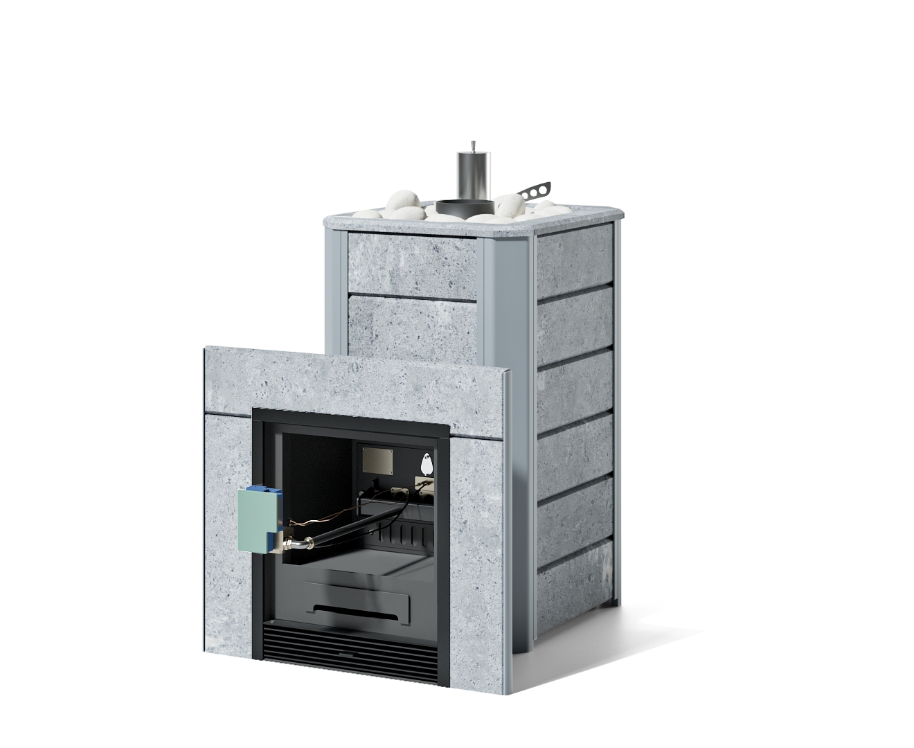 - Печь Ялта 15 К/2024 в облицовке из камня - Марка стали - AISI 321, Вид топлива - Газ, дрова Комплектация с ГГУ-20 электро, Варианты кожуха - Талькохлорит