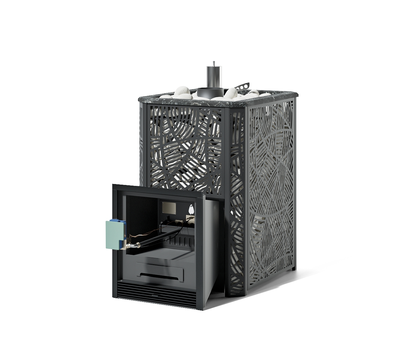 - Печь Ялта 25 К/2025 - Марка стали - AISI 321, Варианты кожуха - Хохлома черный, Вид топлива - Подготовка под ГГУ