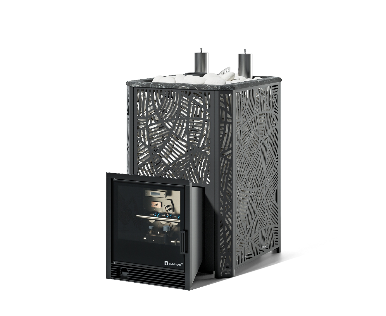 - Печь Ялта 35 К/2025 - Варианты кожуха - Модерн черный, Вид топлива - Газ Комплектация с САБК-40, Марка стали - AISI 321