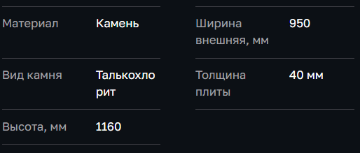 Талькохлорит – самый распространённый и широко известный камень, применяемый для облицовок печей и отделок парных помещений. Место добычи – Карелия. Используются слебы только из нижних горизонтов, которые обладают высоким качеством камня.