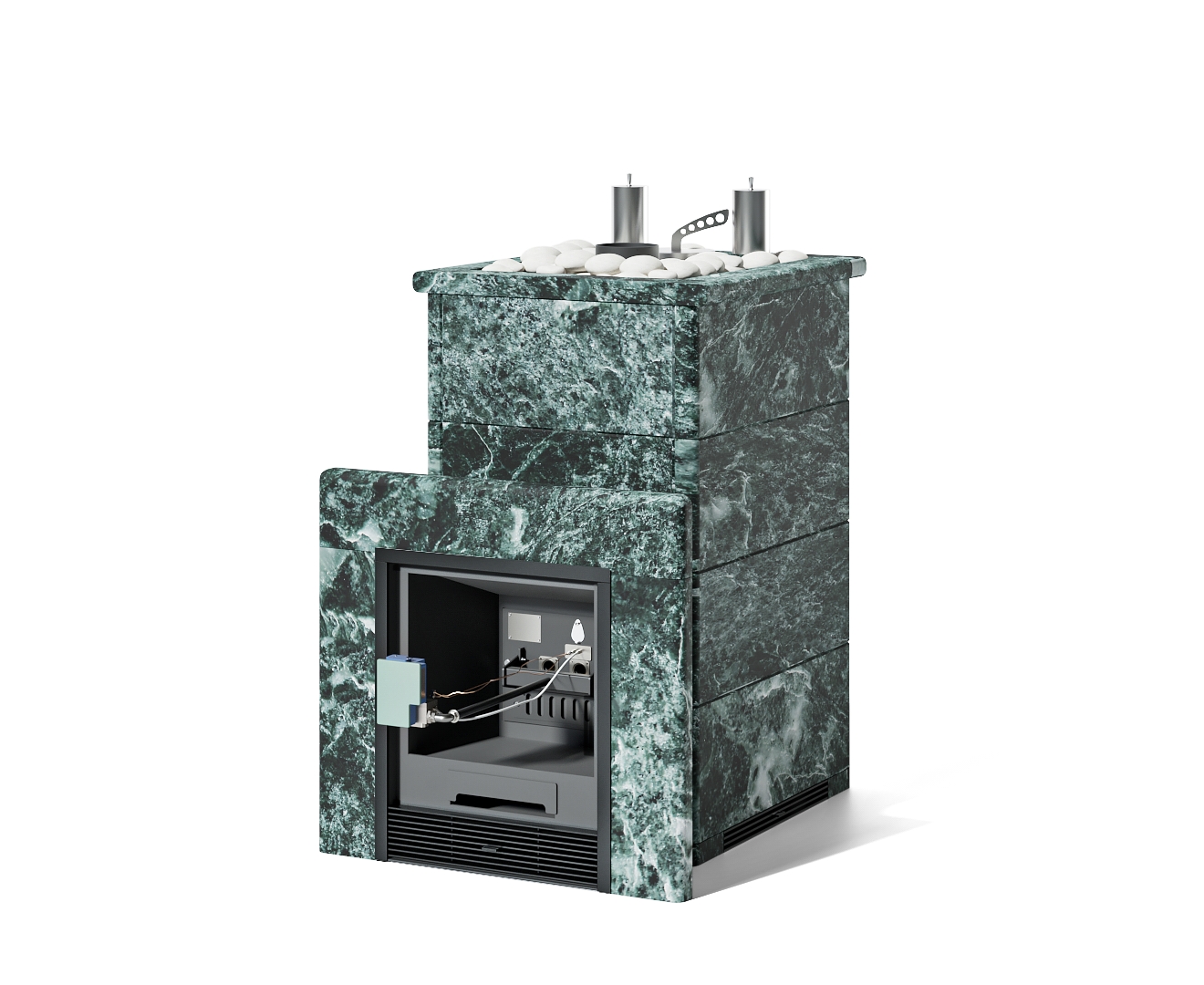 - Сочи К в полноценном кожухе - Варианты кожуха - Талькохлорит, Марка стали - AISI 321, Вид топлива - Газ Комплектация с САБК-40